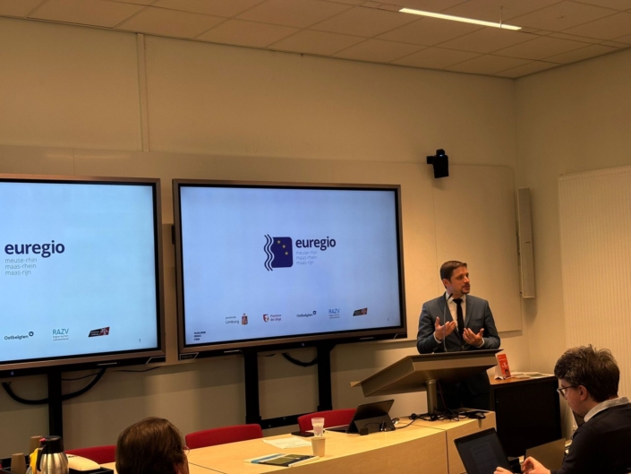 Az előadássorozat zárásaként Paul Hölsgens (az ETT hálózati koordinátora) bemutatta a Connect’ED és a CrossCircular projekteket, amelyek a határon átnyúló pályaválasztási tanácsadásra és a körforgásos gazdaságra összpontosítanak. Hangsúlyozta az interkulturális kapcsolatok elmélyítésének jelentőségét, amelyet anyanyelvi asszisztensi programokkal, valamint a szomszédos nyelvek oktatását elismerő iskolai minősítésekkel („labels”) kívánnak előmozdítani. Végül Sem Jans (az ITEM kutatója) ismertette a régió rendőrségi együttműködéseit olyan projekteken keresztül, mint a NeBeDeAgPol, az Eurorégiós Rendőrségi Információs és Együttműködési Központ (EPICC), vagy az Eurorégiós Információs és Szakértői Központ (EURIEC). Ez utóbbi célja a Belgium, Németország és Hollandia közötti, közigazgatási kiskapukon keresztül zajló szervezett bűnözés elleni, határon átnyúló adminisztratív együttműködés fellendítése. Külön kiemelte a GPT-k (Grensoverschrijdende Politie Teams) gyakorlatát: ezek olyan kétnemzetiségű rendőri egységek, amelyekben holland és német rendőrök együtt járőröznek, amivel egy integráltabb biztonsági hálózatot hoznak létre a határtérségben.