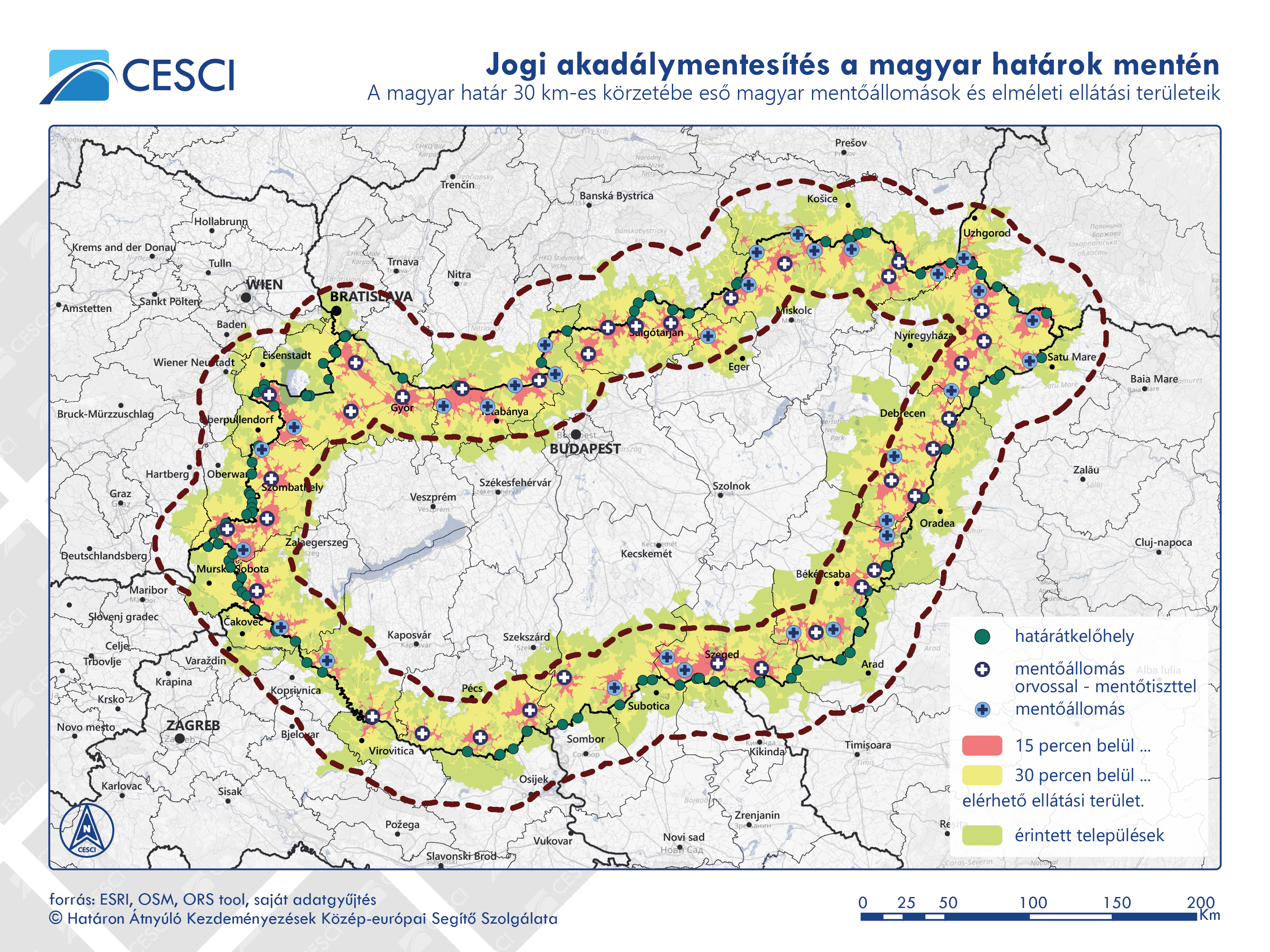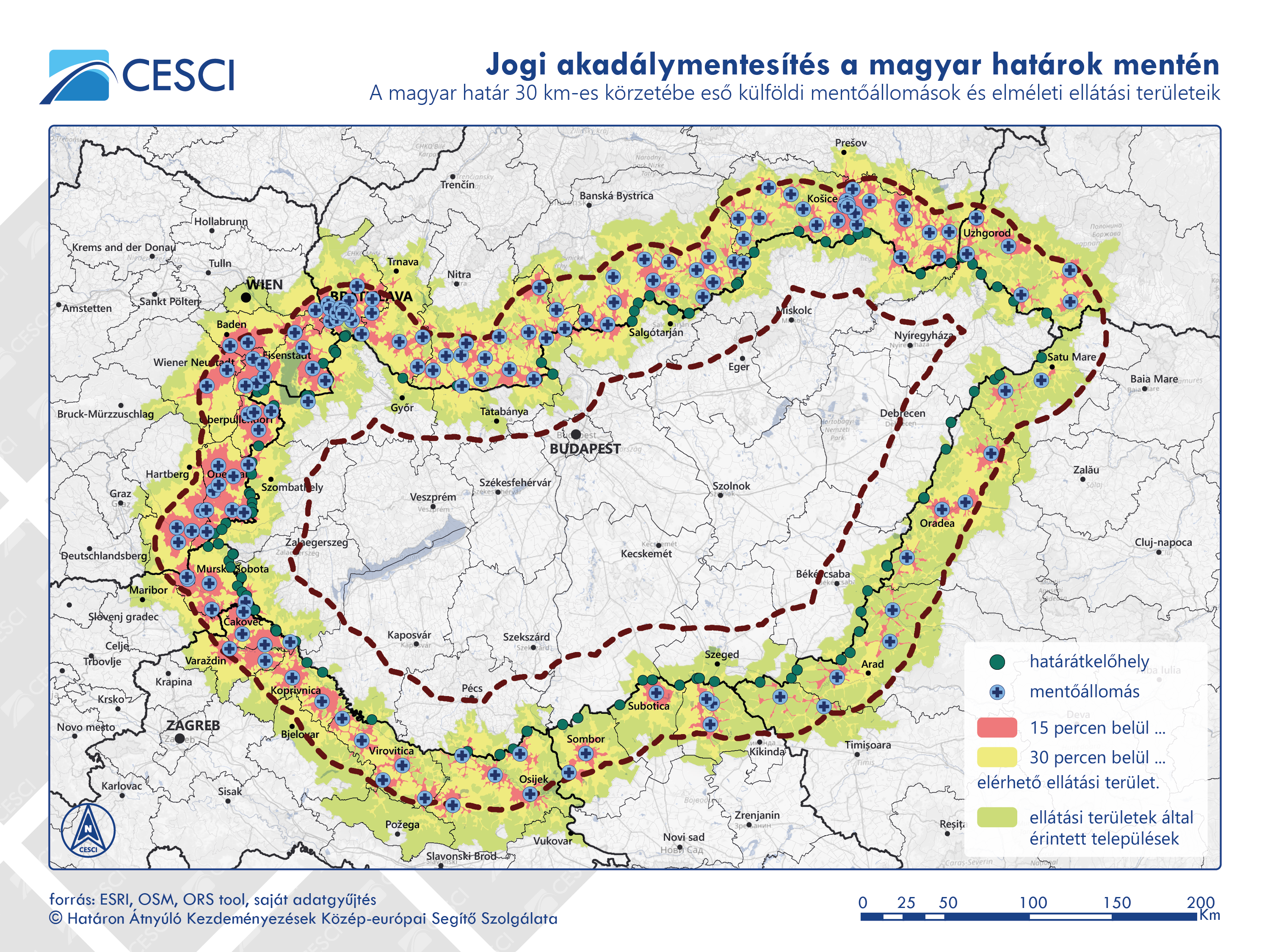 A CESCI 2018-ban szervezett először munkatalálkozót a magyar és a szomszédos országokbeli mentőszolgálatok számára azzal a céllal, hogy az eltérő jogszabályi háttér és irányítási rendszer mellett működő szolgálatok közötti tudáscserét és együttműködést támogassa. Az Igazságügyi Minisztérium által támogatott következő Jogi akadálymentesítési projektek segítségével újabb értekezletre és egy sankt pölteni tanulmányútra került sor, valamint a Siegfried Weinert által koordinált alsó-ausztriai mentőszolgálatokkal és a Sürgősségi Diszpécser Központtal (Notruf Niederösterreich) együttműködésben a cseh-osztrák határon már működő modellt felhasználva, dr. Balogh Tamás szakértő jóvoltából készült egy javaslat a magyar-osztrák mentési együttműködési megállapodásra.