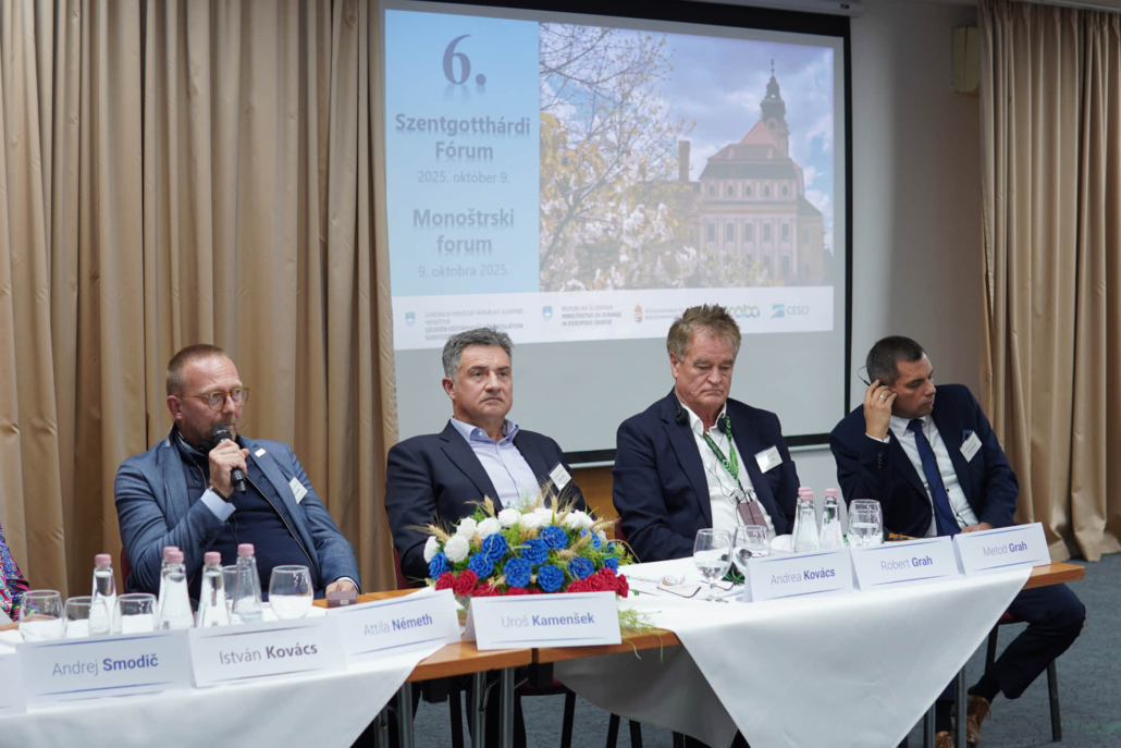 V konferenčni dvorani Slovenskega kulturnega in informacijskega centra v Monoštru je 9. oktobra 2025 potekal šesti Monoštrski forum. Forum, ki je bil prvič organiziran leta 2015 na skupno pobudo veleposlaništev obeh držav in CESCI, se je letos osredotočil na prve oprijemljive rezultate skupnega slovensko-madžarskega sklada in na oblikovanje skupne blagovne znamke, ki temelji na lokalnih vrednotah obmejnega območja. Organizatorji so združili vladne in občinske, politične, gospodarske in lokalne deležnike, da bi razpravljali o prihodnjih razvojnih korakih, ki temeljijo na dosedanjem sodelovanju.